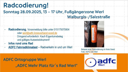 Die ehrenamtlich aktiven Mitglieder der ADFC Kreisgruppe Soest e.V. mit Ortsgruppen in Lippstadt und Werl sowie Aktivengruppen in Soest und Warstein beraten und stellen Kontakte her für Menschen, die sich im Kreis Soest für das Radfahren einsetzen und die Mobilität am Lebensmittelpunkt in ihrer Stadt oder Gemeinde mit dem Rad - Mehr Platz fürs Rad - verbessern wollen.