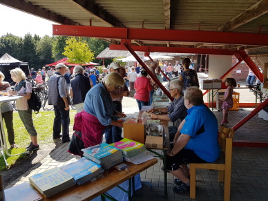 In Herzfeld hatte der Stand des ADFC Kreisverband Soest nicht nur wegen seiner Funktion als Stempelstelle großen Zulauf. Klaus, Christian, Martin, Rita und Stefan verteilten die Broschüren des ADFC und die Radkarte des Kreises Soest wie warme Semmeln an die interessierten TeilnehmerInnen des Radfestes. Immer wieder zeigt sich, dass die kleine Gemeinde im Norden des Kreises Soest sich um die Menschen bemüht und miteinander anpackt. Selbstverständlich besucht der Bürgermeister die Stationen des Fahrradthons und bedankt sich bei den vielen Ehrenamtlichen, die der Veranstaltung ihre Prägung geben. Man kennt sich und läd gerne Fremde ein zu Gast zu sein. Die landschaftlich reizvolle Strecke, die im Uhrzeigersinn befahren wird, ermöglicht es den Teilnehmenden jeden Alters in eigener Geschwindigkeit das Terrain zu erkunden. Mitfeiern und Gemeinschaft erleben ist der Kern der Veranstaltung. Schon jetzt steht fest, dass der ADFC im nächsten Jahr wieder dabei sein wird.